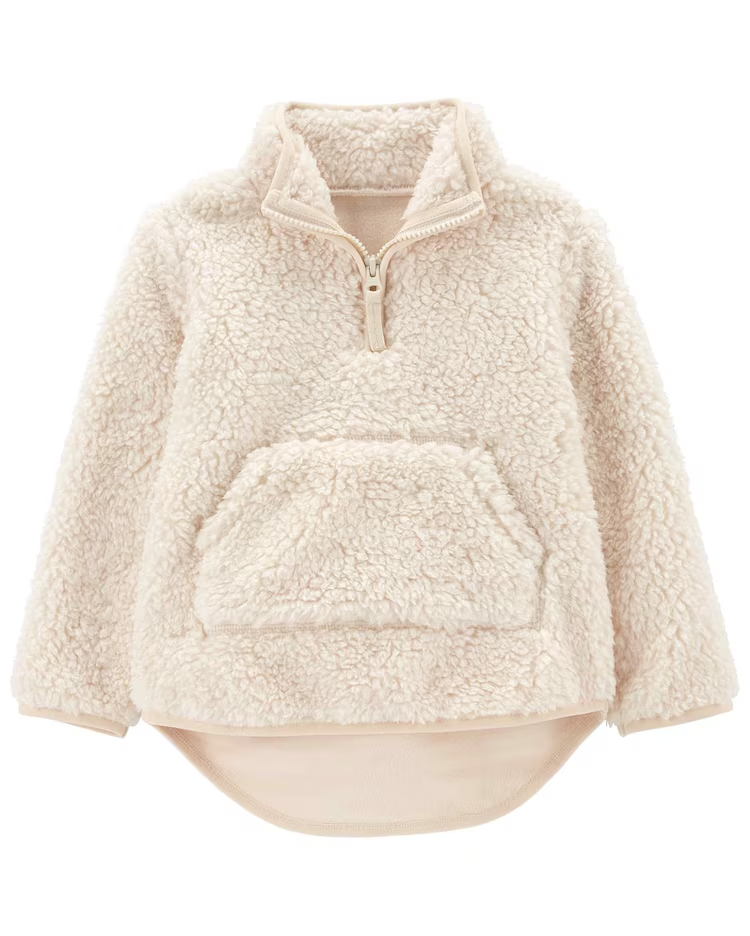 Perfeita para aquecer as pequenas, a Blusa de sherpa bebê gola alta e bolso bege | Carter’s é neutra e pode ser combinada com diversos looks e seu tecido traz o conforto e o aconchego necessários. Combine com uma calça de moletom do mesmo tom e forme um conjuntinho. Invista!