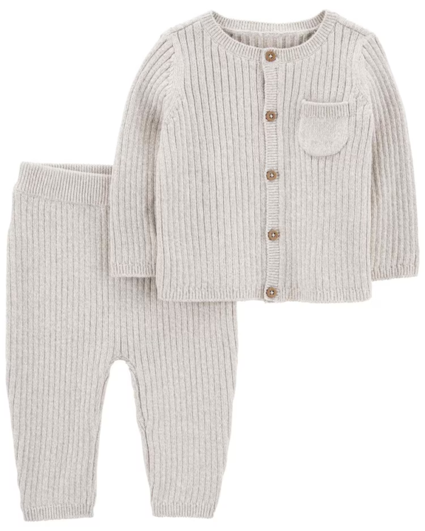Ideal para dias mais gelados, o Conjunto longo bebê 2 peças de tricot com bolso cinza | Carter’s deixará o seu bebê ainda mais lindinho e protegido do frio. Feito de tricot, o conjunto conta com um cardigan com bolso e botão e uma calça com cós de elástico, aliando fofura e proteção para o seu bem mais precioso. Aproveite!
