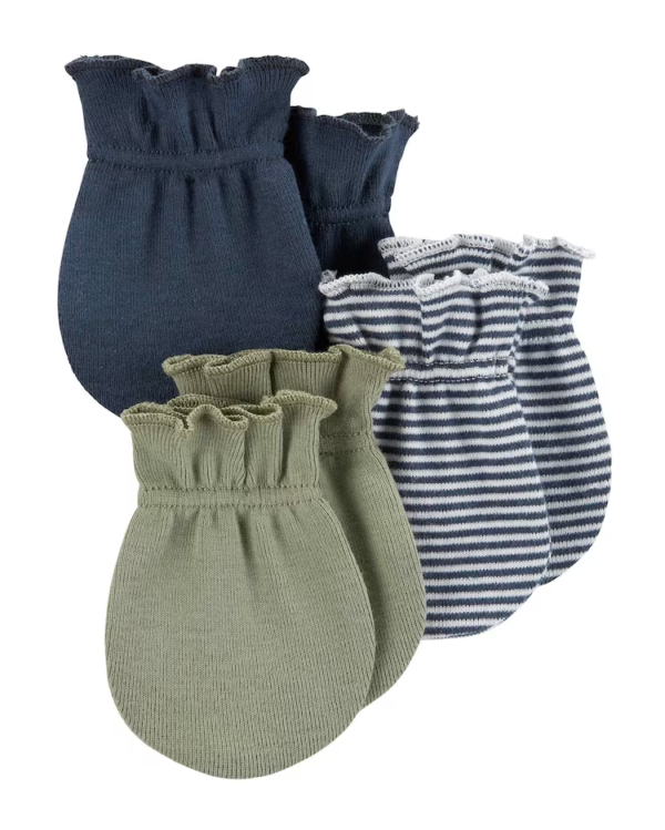 O Kit luva bebê 6 pares listrado azul | Carter’s é ideal para o dia a dia do recém nascido e a proteção das mãos nos seus primeiros dias. O kit é composto por três pares de luva, um par na cor verde, uma par na cor azul e outro par na cor azul e branca com estampa listrada. Seu bebê ficará confortável e estiloso, invista!