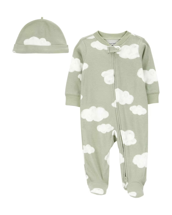 Macacão bebê nuvens com touca verde | Carter’s