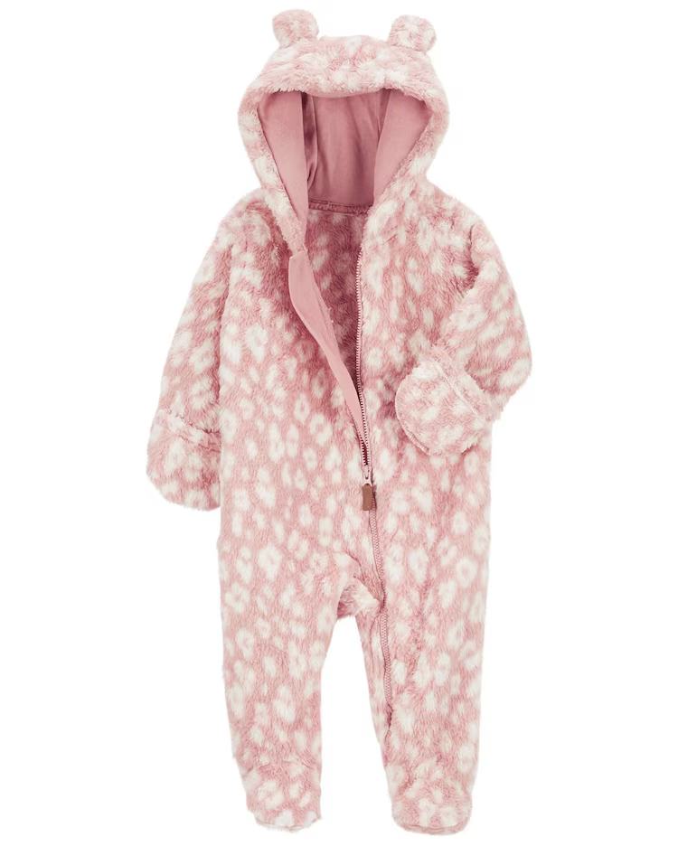 Após um dia de descobertas, o Macacão bebê peluciado com capuz de orelha onça rosa | Carter’s aparece para proporcionar conforto e fofura para sua baby. A peça é feita de tecido peluciado sendo ideal para os dias mais frios. Conta com pezinho, capuz, orelhinhas interativas, estampa de onça, além do fechamento por zíper e mangas longas para proteger a sua pequenininha. Aposte!